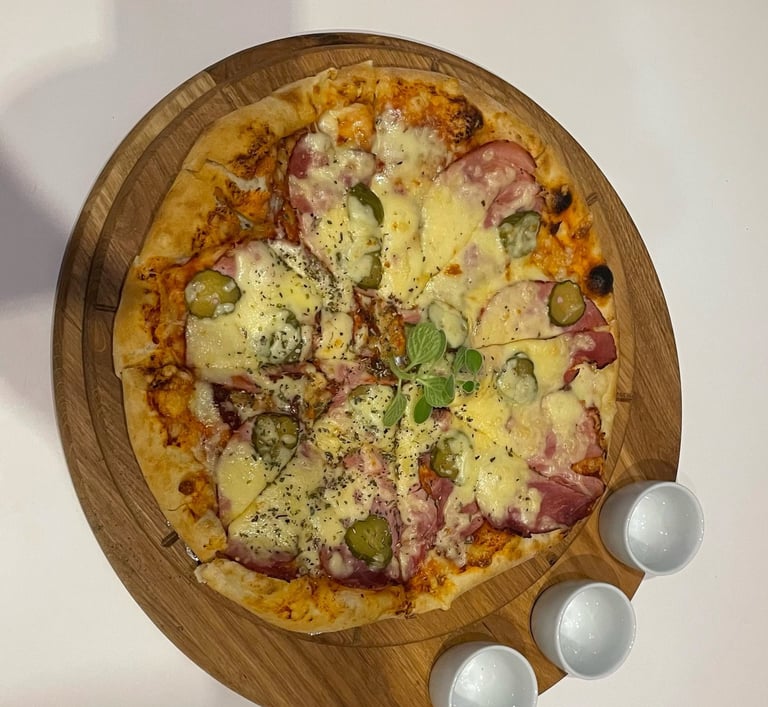 Deski do serwowania pizzy z pojemnikami na sosy